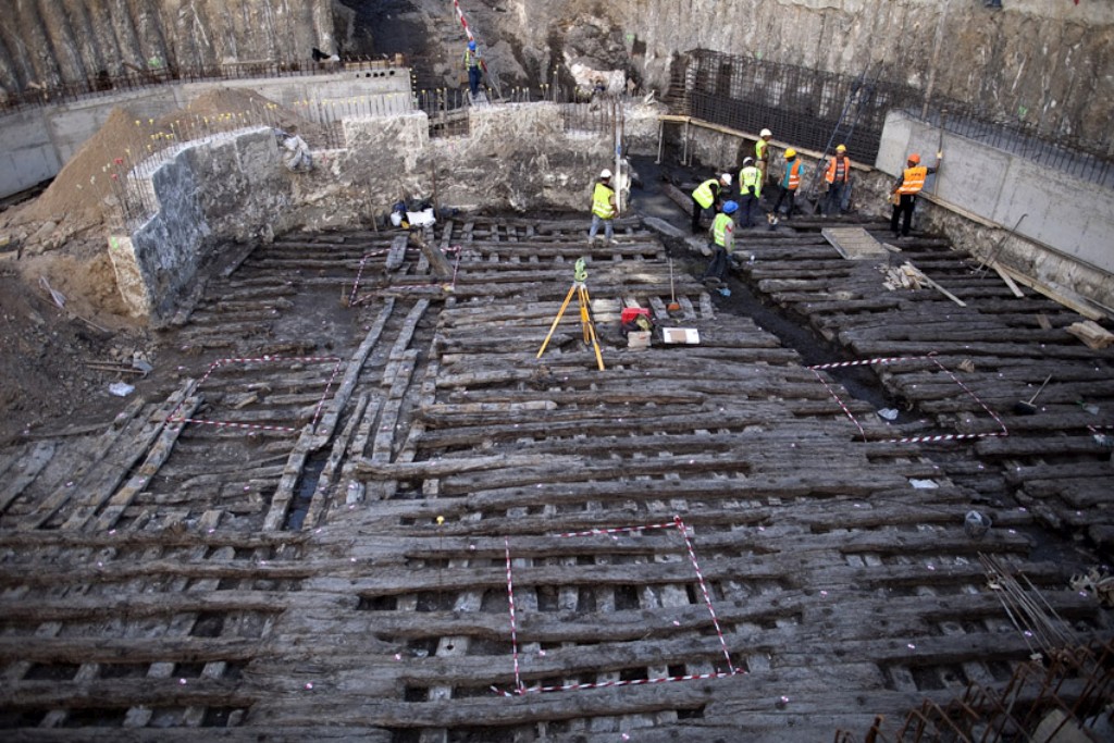 Os arqueólogos encontraram uma enorme rampa de lançamento de barcos do séc. XVI junto ao mercado da Ribeira, em Lisboa, feita com troncos de madeira sobrepostos.