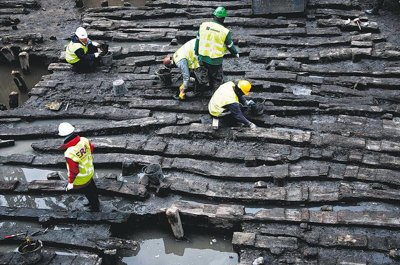 Agora foi descoberto que a camada mais funda da estrutura de madeira é composta por peças de navio reaproveitadas.